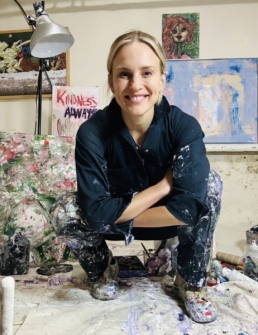 She works across painting and photography, creating in a way that’s intuitive and physical. Rather than starting with a fixed plan, she follows movement, energy, and instinct, letting the work unfold in real time. The result is expressive, layered, and unpredictable.